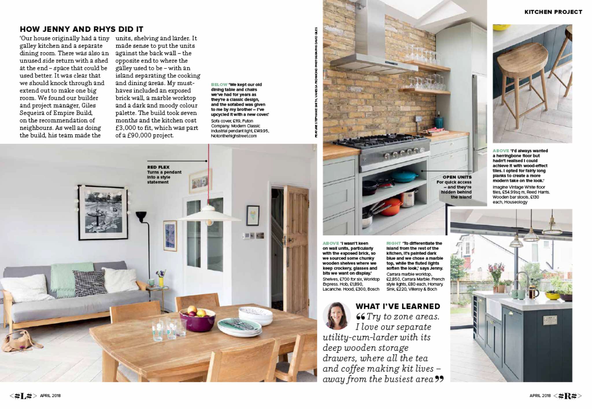 A recent Empire kitchen extension has been featured in April 2018 issue of Ideal Home magazine.